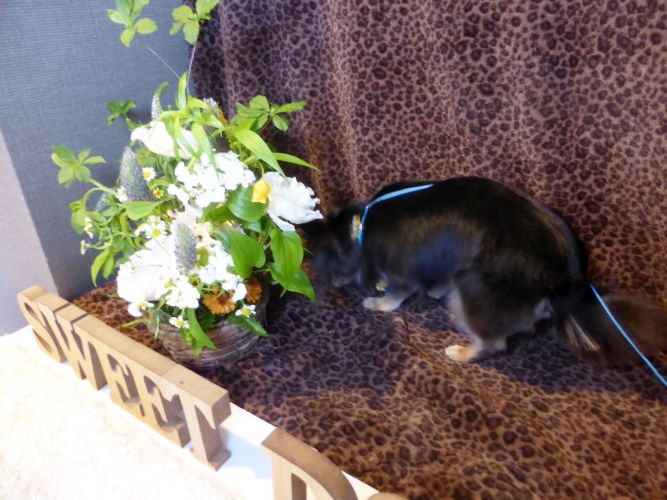 いつも控えめでオドオドしちゃうこまりちゃんは、撮影中もお花の陰でコソコソ・・・