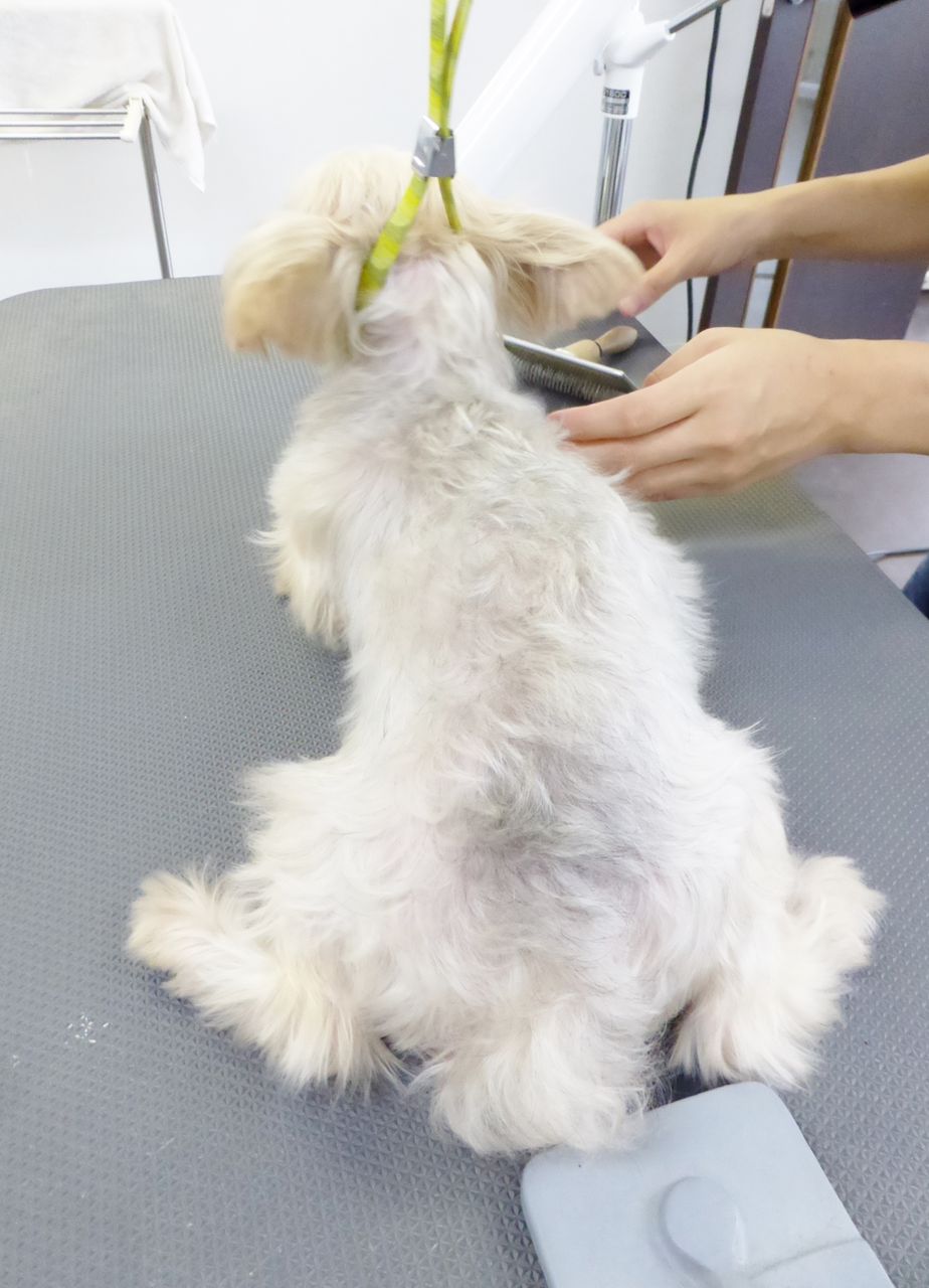 お顔のブローのころにはすっかりくつろいでフセの体勢に(^^♪