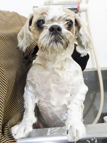 苦手な爪切りを頑張った後はシャンプーでキレイキレイ♪