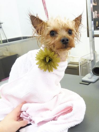 今回は無料券でセラミドパック!いつもお風呂の後にタオルで拭くのはくぅちゃんのセルフサービスで、私たちが手伝おうとすると興奮してガウガウ言っちゃいます( ̄◇ ̄;)ある程度セルフドライしてもらってから、興奮しすぎないか様子を見ながらセラミドを塗布♪仕上がりしっとりでツヤツヤになりました❤︎