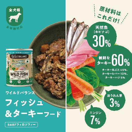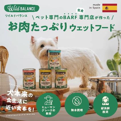 ワイルドバランスは、チキン・ビーフ・サーモン・ワイルドフィッシュの4種類がありますが、sweet dog’sでは特に、血液・脳・心臓の健康に配慮してお魚の入ったフードを推しております!